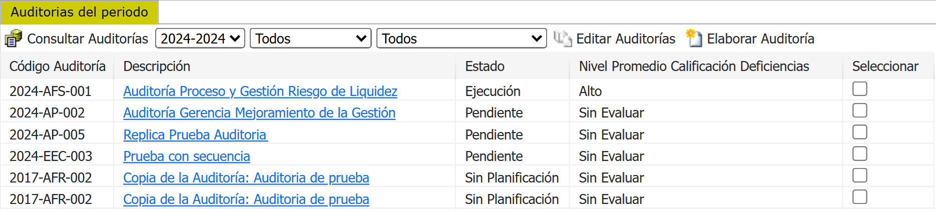 - Desde el módulo principal de Gestión de auditorías, seleccione Consultar Auditorías.