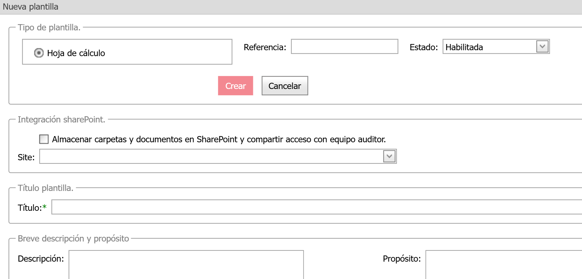 - Propósito: Esta propiedad es la finalidad u objetivo por la cual se crea la plantilla.