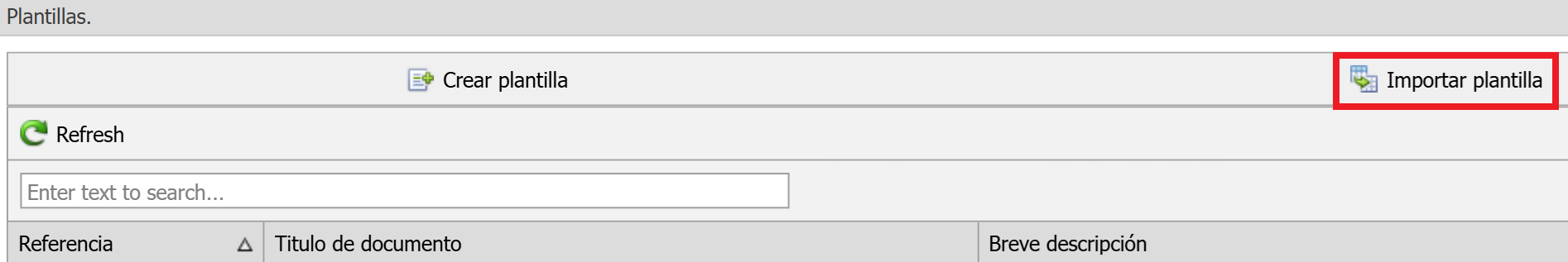 - Tras abrir Plantillas, podrá importar su plantilla escogiendo la opción Importar plantilla.