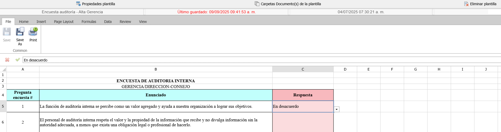 Para que estas encuestas, cuestionarios o formularios de recolección de datos, sean enviados a un auditado o responsable de procesos dentro de su organización, deberán de ser incorporada a una solicitud de auditoría.