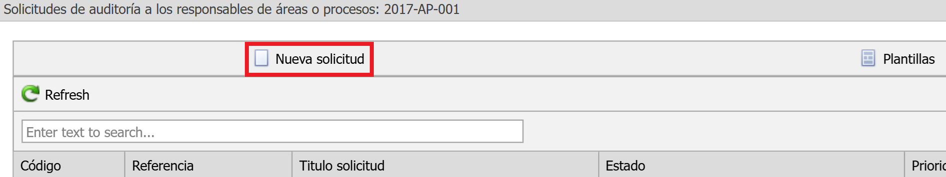 - En el módulo de Gestión de Auditoría, seleccione la auditoría deseada y pulse Solicitudes.