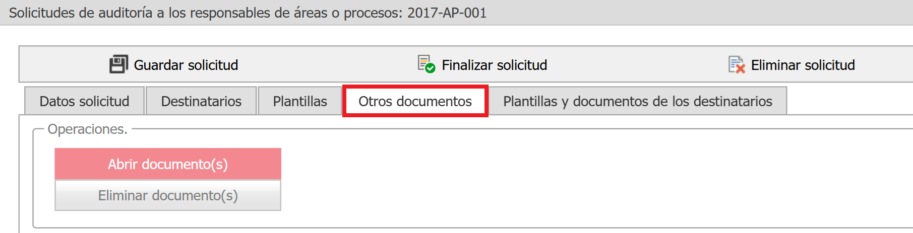 - Seleccione la solicitud de auditoría deseada y diríjase al apartado Otros documentos.